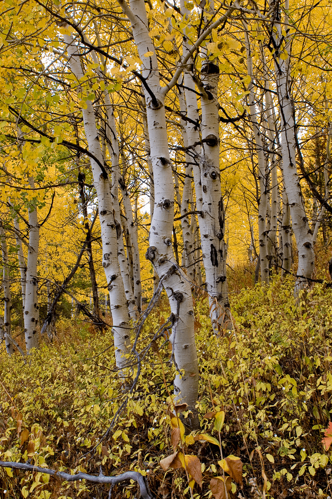 Quaking Aspen: These deciduous trees are easily identified by their smooth, white bark and shimmering leaves. Aspens often grow in clonal colonies, connected by a shared root system, which contributes to their resilience.