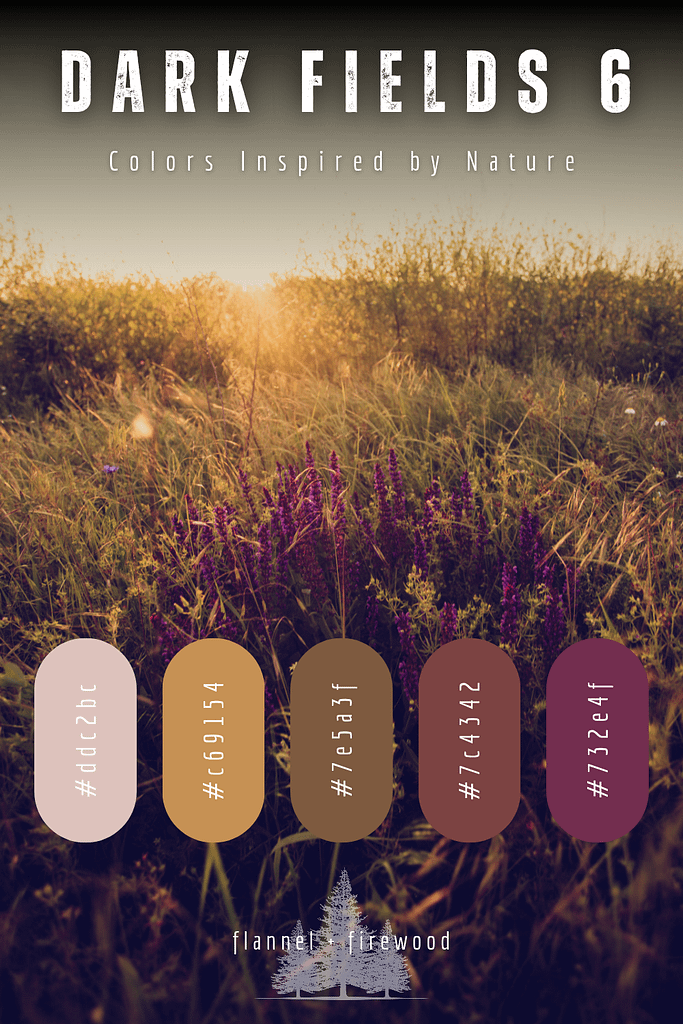 Furthermore, the palette incorporates shades that mirror the subtle dance of light over the rolling terrain. Sage green and dusk violet transport us to the edges of the fields where wildflowers sway gently in the evening breeze. Sage green whispers of the verdant life thriving in the fields, while dusk violet echoes the soft hues of blooms touched by twilight. Together, these colors create a balanced harmony between the fields’ tranquil surface and the vibrant life they harbor. As the evening unfolds, these shades merge effortlessly, offering a serene yet invigorating ambiance that captivates both the eye and the soul.