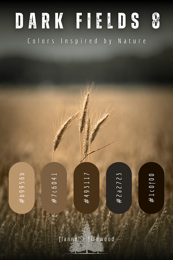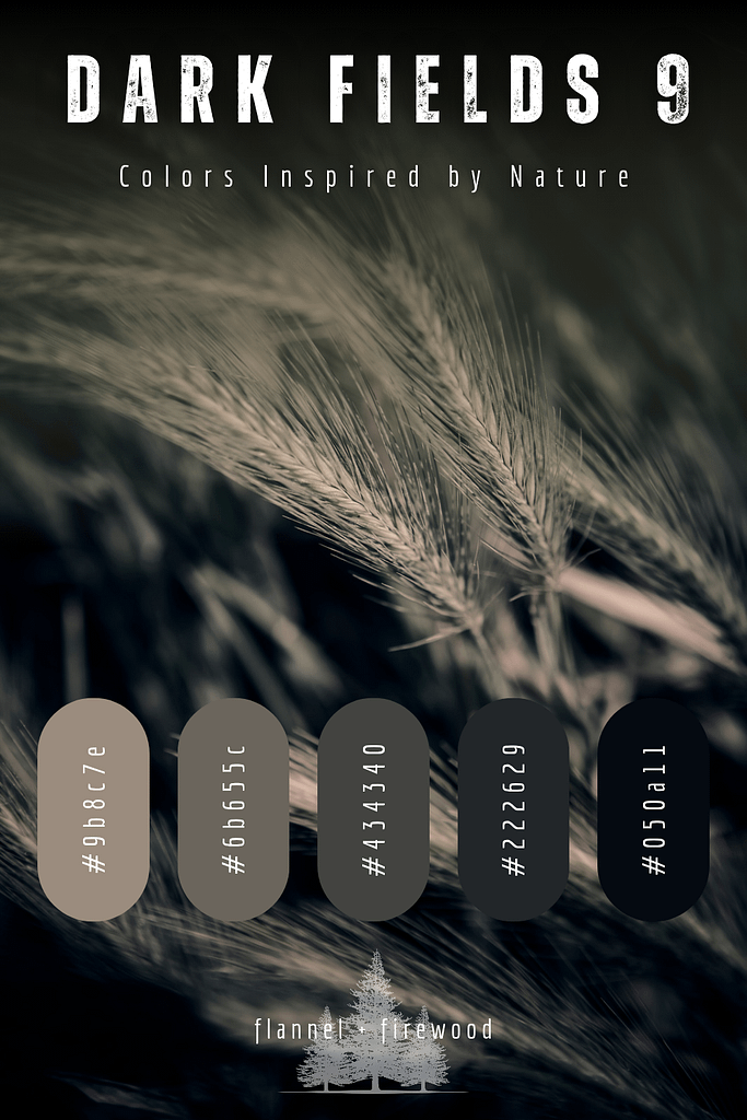The Dark Fields Collection draws its essence from the vast and mysterious expanses of fields under the cloak of twilight. At its core, this palette features deep, earthy hues that reflect the serene yet enigmatic nature of the landscape. Harvest gold and midnight brown anchor the collection, capturing the richness of fields bathed in the fading light of dusk. These colors evoke a sense of abundance while encapsulating the timeless allure of open spaces as night approaches. As shadows lengthen across the fields, the palette invites artists and designers to explore the profound beauty found in the interplay of light and darkness.