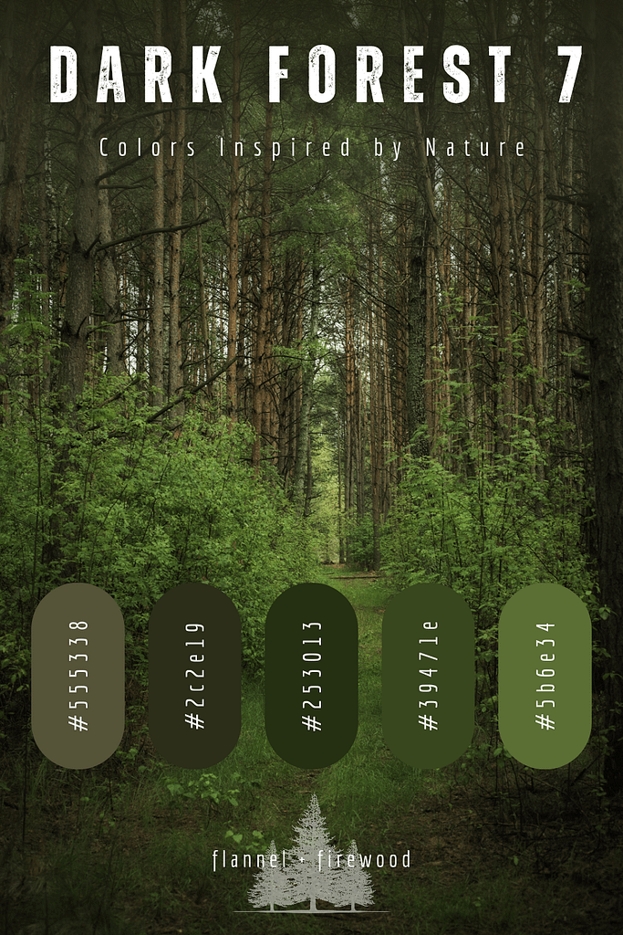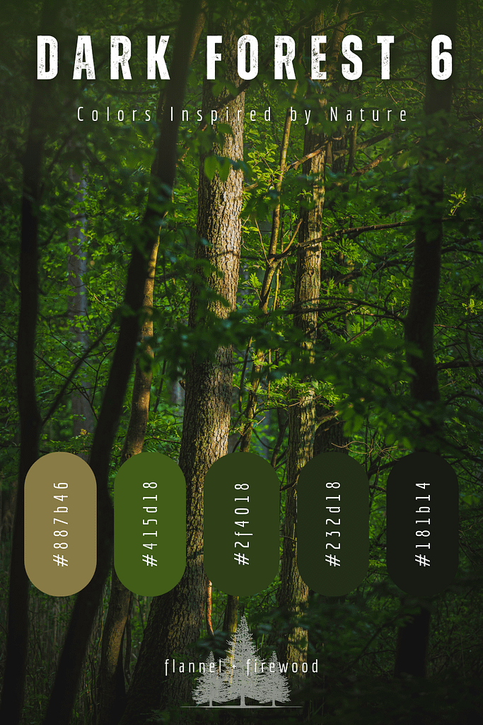 Next, the palette incorporates shades reflecting the forest’s intricate interplay of light and darkness. Mossy green and twilight gray evoke the textures of the forest floor and the gentle shadows cast by the moon. Mossy green whispers of the lush undergrowth that thrives in the shadows, while twilight gray echoes the subtle nuances of leaves rustling in the night breeze. Together, these colors create a harmonious balance between the forest’s vibrant life and the serenity of nightfall. As the darkness envelops the landscape, these shades blend seamlessly, offering a captivating yet tranquil atmosphere that inspires creativity and reflection.