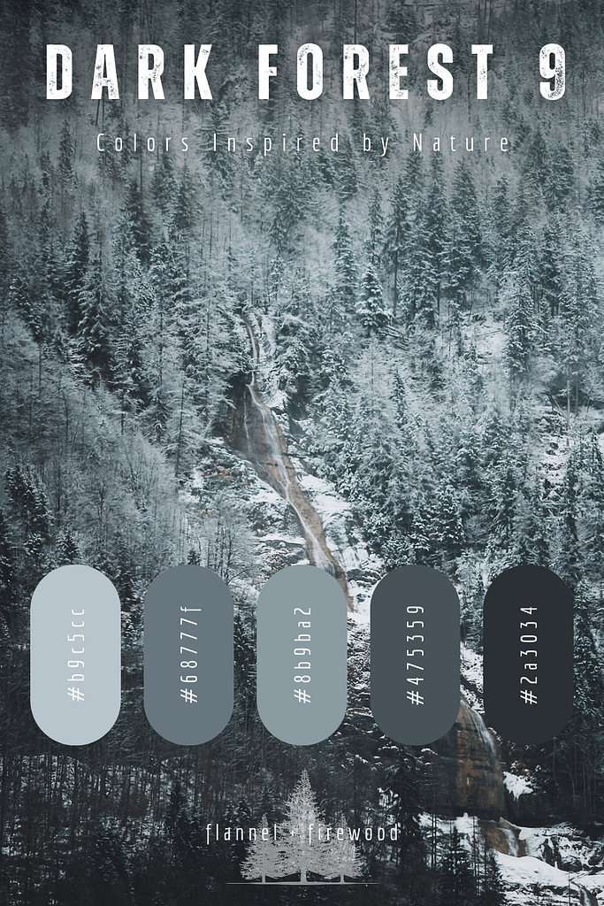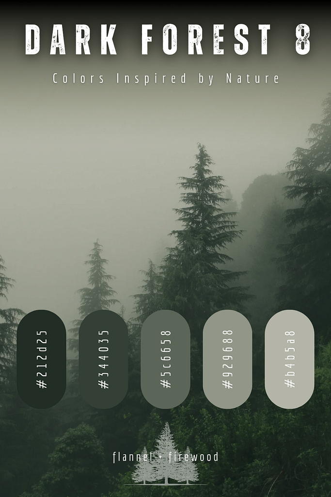 The Dark Forest Collection draws its inspiration from the mysterious allure of dense woodlands as twilight deepens into night. At the heart of this palette are deep, shadowy hues that mirror the forest’s profound depths and the play of light that occurs as day surrenders to night. Midnight green and charcoal black form the collection’s foundation, capturing the essence of towering trees silhouetted against the night sky. These colors instill a sense of intrigue while encapsulating the timeless mystery of the woodland. As the forest becomes shrouded in darkness, the palette invites artists and designers to explore the enthralling beauty of this transformation.